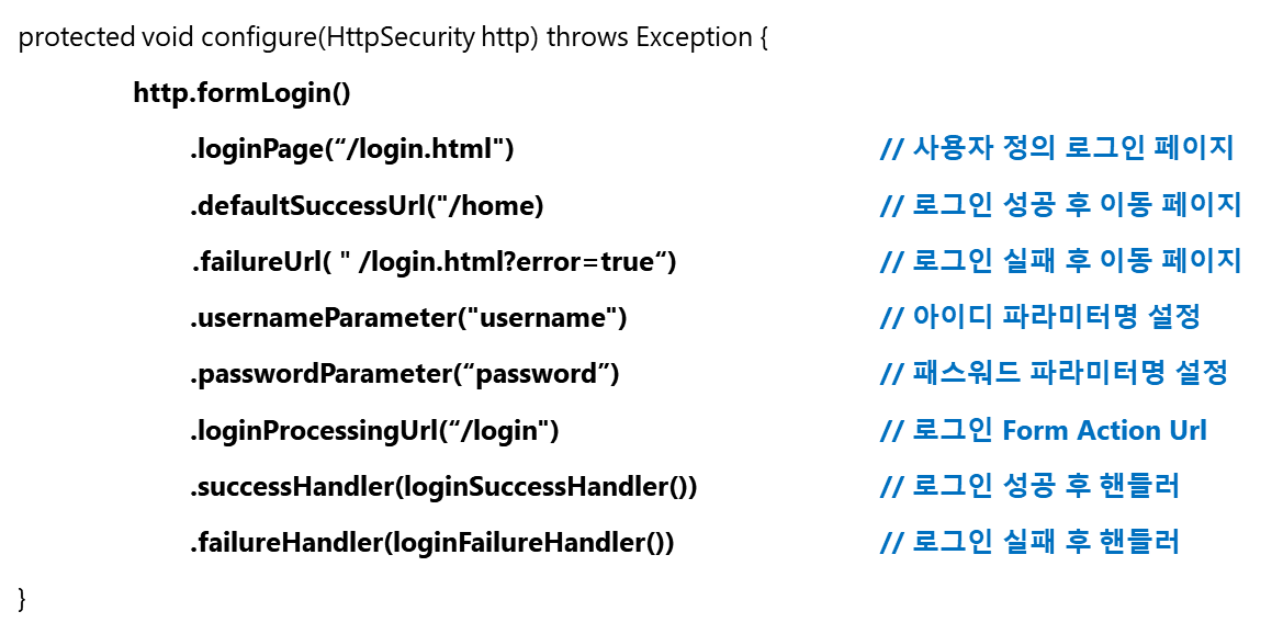http.formLogin(); // form-login ์ธ์ฆ ์ ์ฑ