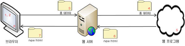 5. ์น ํ๋ก๊ทธ๋จ(js)์ด ๋ฐ์ดํฐ๋ฅผ ์ฒ๋ฆฌ ํ ์๋ก์ด HTML ํ์ด์ง๋ฅผ ์น ์๋ฒ์ ๋ณด๋