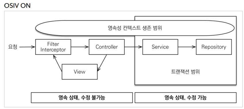 ๊ทผ๋ฐ ๊ธฐ์กด์ ํ์ด๋ฒ๋ค์ดํธ์์ Open Session In View๋ผ๊ณ ์ฌ์ฉํ๊ธฐ์, OSIV๋ผ๊ณ ๋ง์ด ์ฌ์ฉํ๋ค.