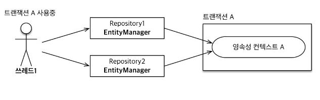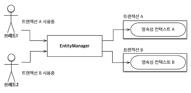 ๋ฐ๋๋ก, EntityManager๋ฅผ ํ๋๋ฅผ ๋๋ ค์ฐ๋๋ผ๋ ํธ๋์ญ์ ๋จ์๋ก ๋ค๋ฅธ ์์์ฑ ์ปจํ ์คํธ๋ฅผ ์ฌ์ฉํฉ๋๋ค.
