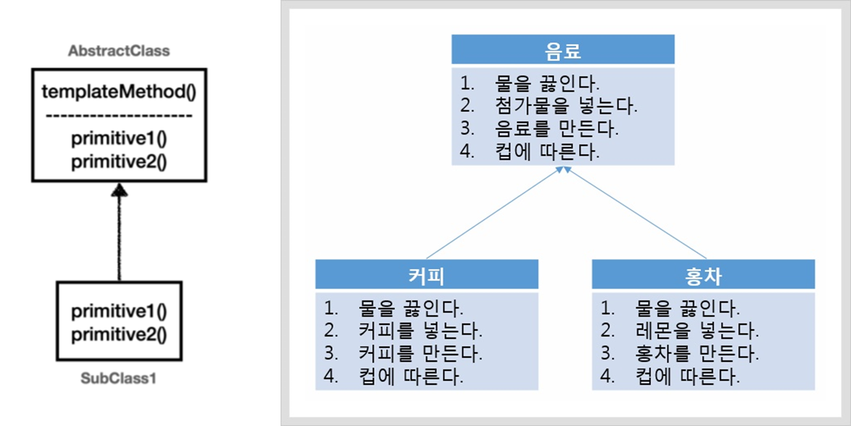 ํ ํ๋ฆฟ ๋ฉ์๋์์๋ ์์์ ํตํด ํด๋์ค์ ๊ณจ๊ฒฉ(Template)์ ๋ง๋ ๋ค.