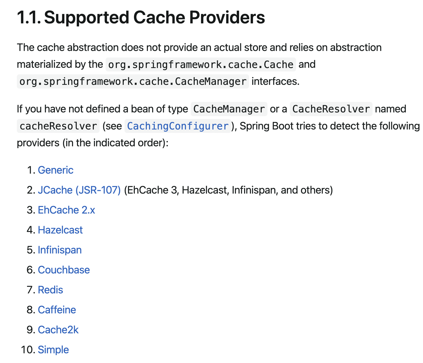 ํด๋น ์บ์ ๊ตฌํ์ฒด๋ค์ ๋ฐ๋ก ์ค์ ํด์ฃผ์ง ์์๋, ์ค์ ํ์ผ(yml) ๊ธฐ๋ฐ์ผ๋ก ์บ์ ์ค์ ์ด ๊ฐ๋ฅํ๋ค.