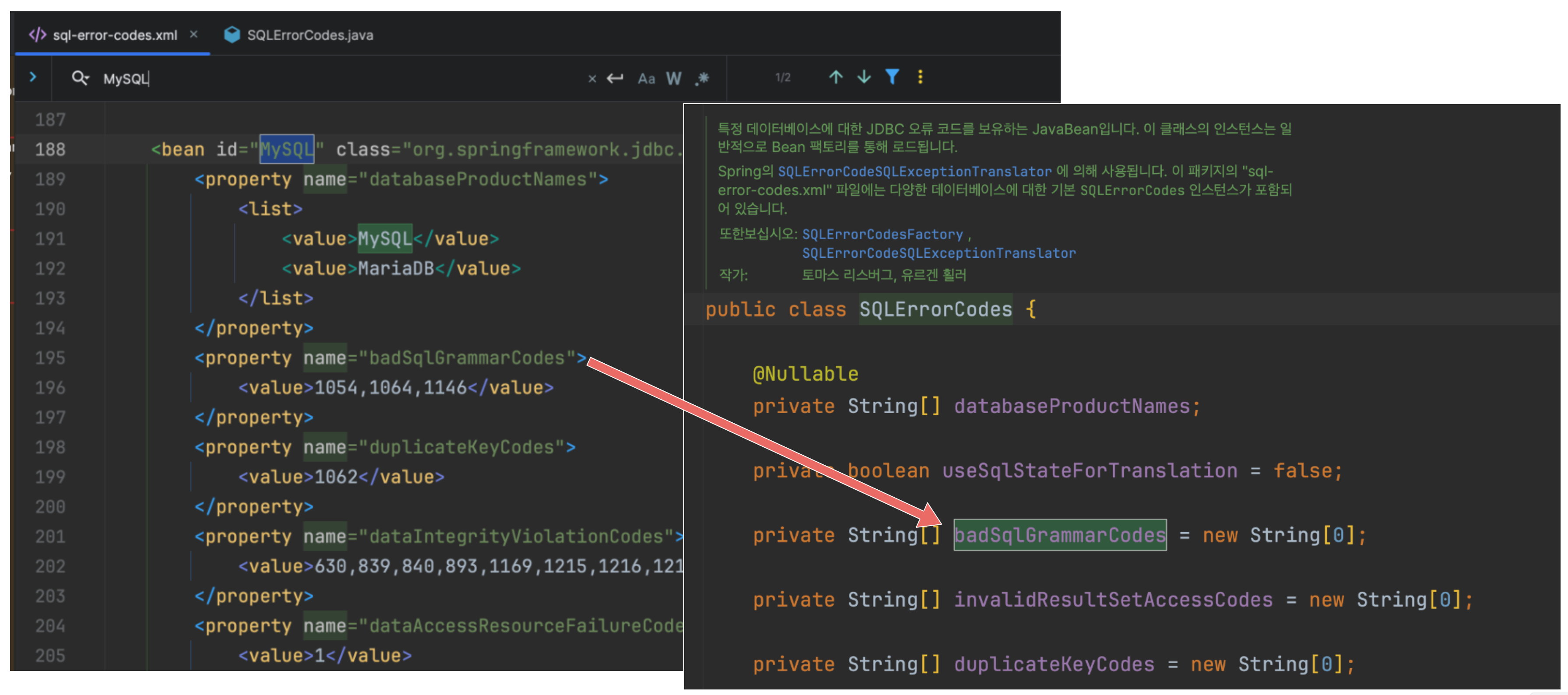 ์คํ๋ง์ผ๋ก DB๋ฅผ ์ฌ์ฉํด๋ดค๋ค๋ฉด ์๊ฐ๋ณด๋ค ์๋ฌ ์ข ๋ฅ๊ฐ ์์ธํ๊ฒ ๊ตฌ๋ถ๋์ด์๋๊ฑธ ์ ์ ์๋๋ฐ, ์ด๋ ์คํ๋ง์ด ๊ฐ DB ๊ฐ ๋ฐํํ๋ ์๋ฌ๋ณ๋ก class SqlErrorCodes ๊ฐ์ฒด๋ฅผ ์ ์ํด๋์๊ธฐ ๋๋ฌธ์ด๋ค. ์ด๋ org.springframework.jdbc.support.sql-error-codes.xml ํ์ผ์ ํตํด ๋น์ด ์์ฑ๋๋ค.