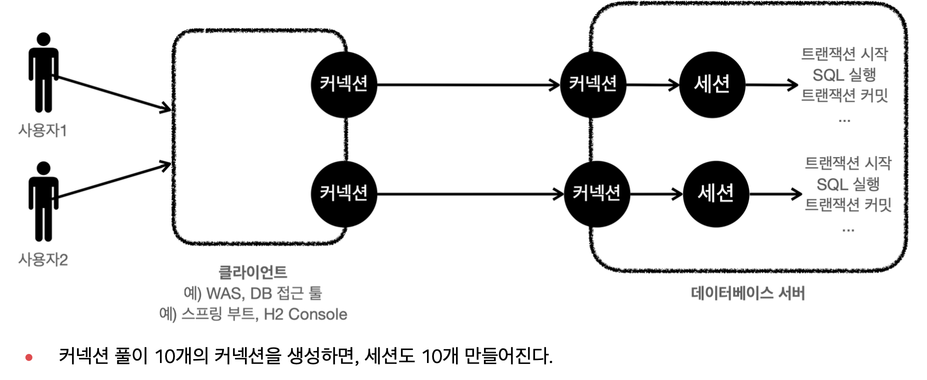 ์ฐธ๊ณ ๋ก ์๋ฐ ์ดํ๋ฆฌ์ผ์ด์ ์ด ์๋ ๋ฐ์ดํฐ๋ฒ ์ด์ค์์ ์ฌ์ฉ๋๋ Connection๊ณผ Session์ ์๋ฏธ๋ ์๋์ ๊ฐ๋ค.