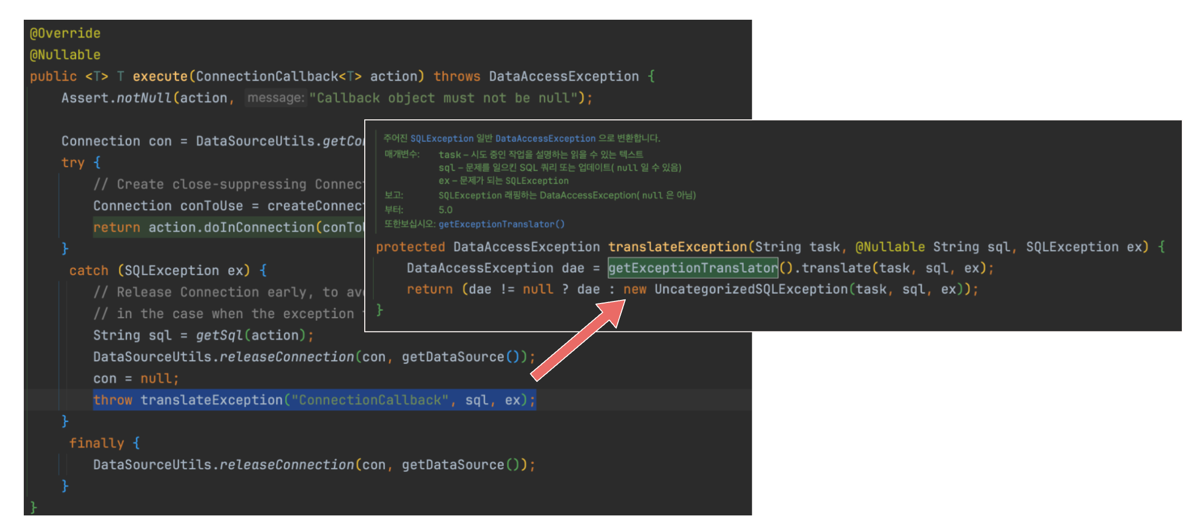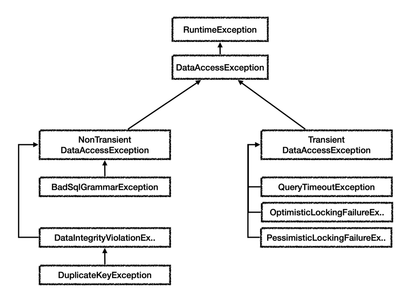 ์ฐธ๊ณ ๋ก ์ฌ๋ฌ ๊ณผ์ ์ ๊ฑฐ์ณค์์๋ ์ ์๋ ์๋ฌ๋ฅผ ์ฐพ์ง ๋ชปํ๋ค๋ฉด, ์๋ฌ ๋ก๊ทธ๋ฅผ ๋จ๊ธฐ๊ณ DataAccessException์ ์์ํ UncategorizedSQLException ์ ๋์ง๋ค. ๋ฌผ๋ก ์ด๋ ๊ตฌํ์ฒด์ ๋ฐ๋ผ ๋ค๋ฅผ ์ ์๋ค.