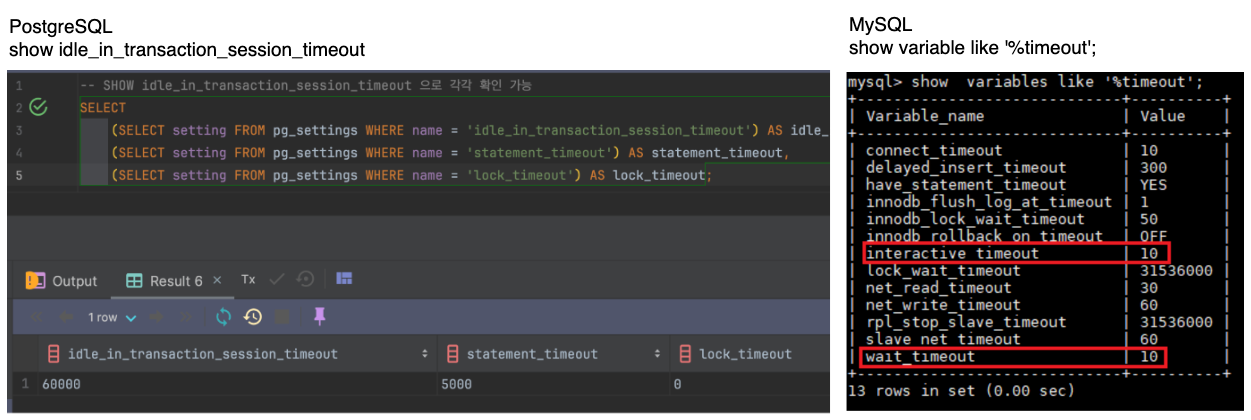 - ๋จ์ํ๊ฒ idle-transaction-session-timeout์ ๋ฌด์์ ๋๋ฆฌ๋ ๋ฐฉ๋ฒ๋ ์๊ฒ ์ง๋ง ์ด๋ DB์ ๋ถ๋ด์ ์ค ์ ์๋ค.