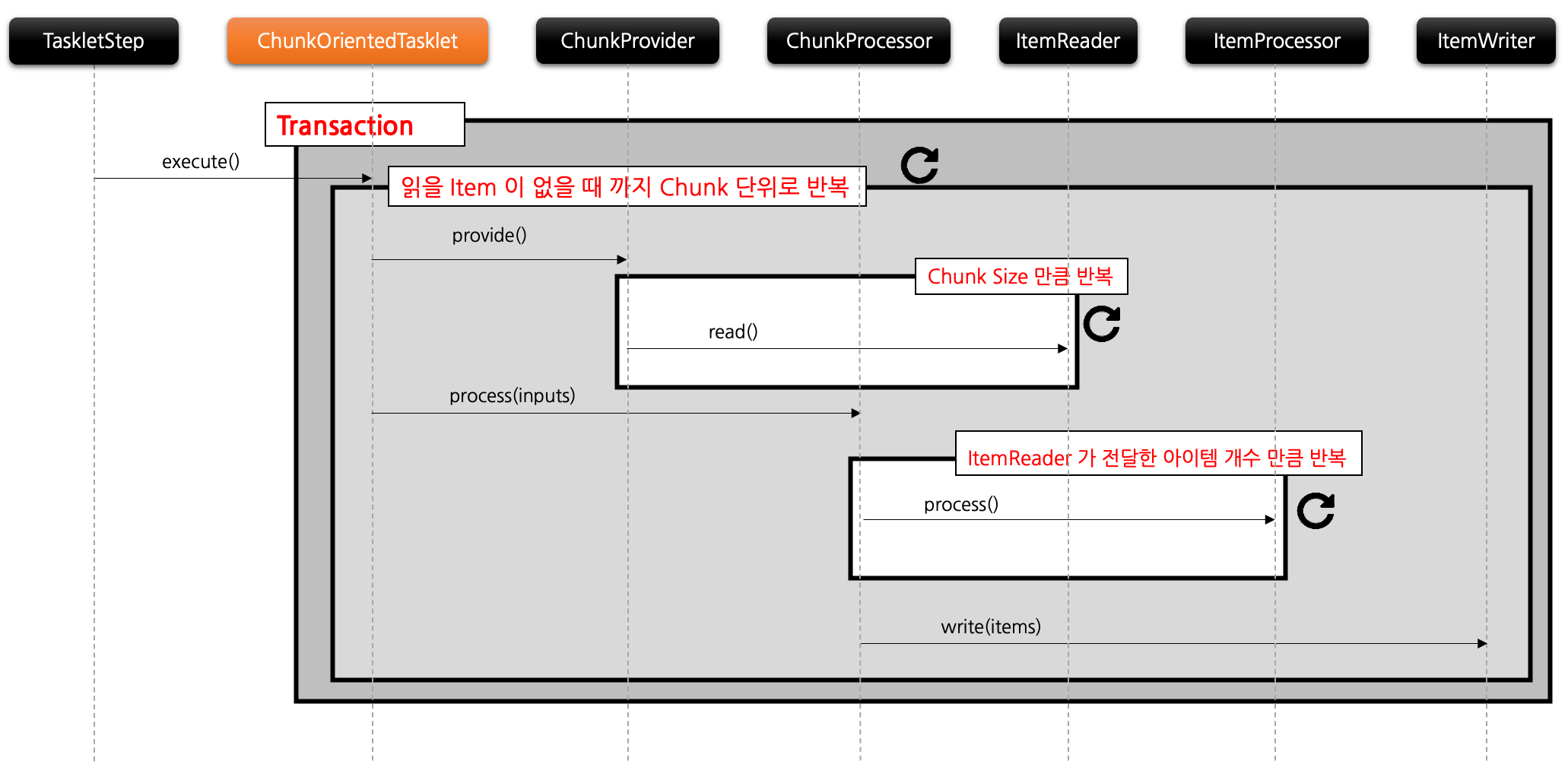 ์ฆ ๋์์๋ ๋ณํจ์ด ์๋๋ฐ ๋จ์ง [์ฒญํฌ๋จ์ ํธ๋์ญ์ ]์ด ์์ ๋ฟ์ด๋ค. ๋ฐฐ์น๊ฐ ์๋ ์ผ๋ฐ์ฝ๋์์ Repository๋ฅผ ์ฌ์ฉํ๋ ๊ฒ๊ณผ ๋์ผ