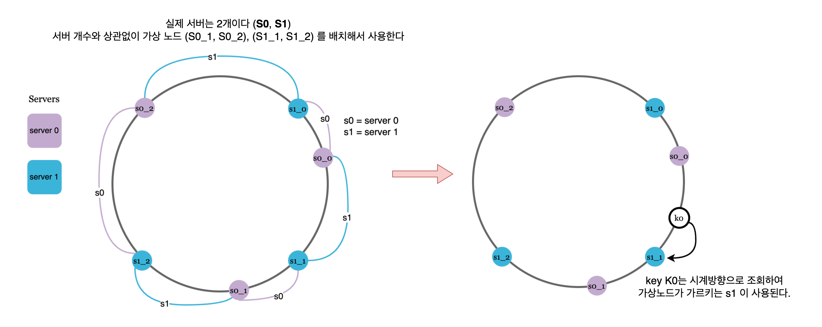 μλ²λ₯Ό μΆκ°νλλΌλ μκ³λ°©ν₯μΌλ‘ hash keyλ₯Ό μ¬μ©νλ κΈ°μ‘΄ 1κ°μ μλ²λ§ ν€κ° λ³κ²½λλ€. λ€λ₯Έ ν€λ μ¬λ°°μΉ λμ§ μλλ€. - μλ² μμ