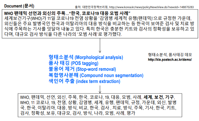 ํ๊ตญ์ด์ ๊ฒฝ์ฐ ๋ช ์ฌํํ๋ฅผ ์ถ์ถํ์ฌ ํํ์๋ถ์, ํ์ฌ์ข ๋ฅ ํ๊น , ๋ณตํฉ๋ช ์ฌ ๋ถํด๋ฑ์ ๊ณผ์ ์ด ํ์ํ ๊ฒ์ ๋๋ค.