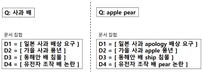 sim(Q,D) = w(๋ถ์ฐ,D) + w(์ฐ๊ด,D) + w(๊ด๊ด,D)