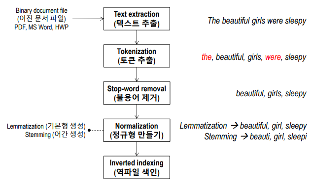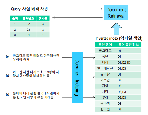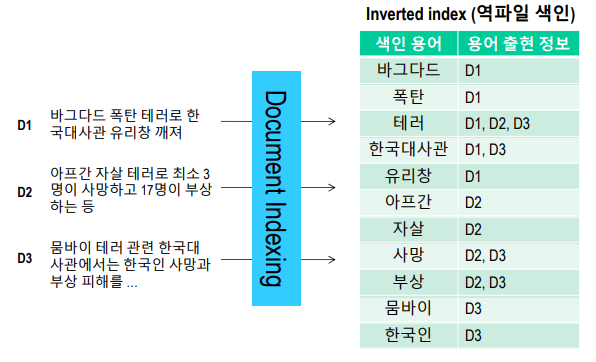 ํจ์จ์ ์ธ ๊ฒ์์ ์ํด [๋ฌธ์ ์งํฉ]์ ๋ฏธ๋ฆฌ ๊ฐ๊ณตํด๋๋ ๊ณผ์ ์ ์๋ฏธํฉ๋๋ค.