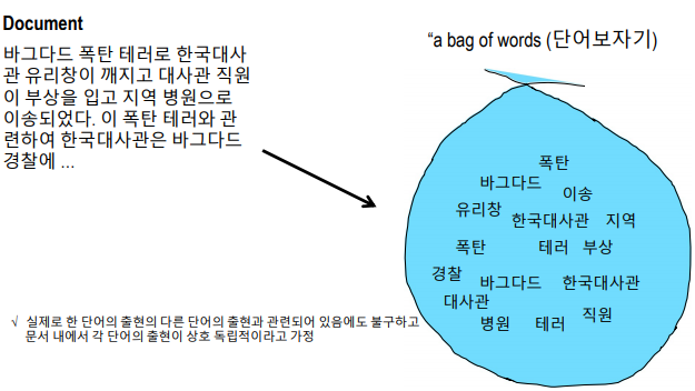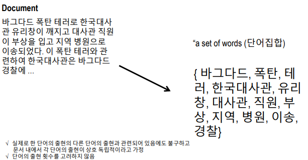 1. a bag of word (๋จ์ด ๋ณด์๊ธฐ)