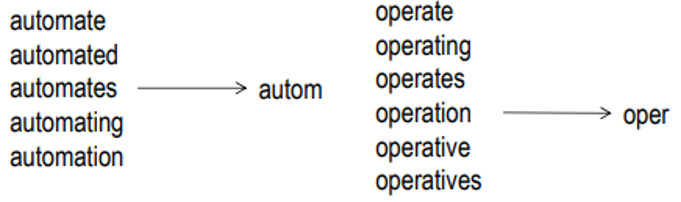 ์์ด์์๋ Stemming(์คํ๋ฐ)์ด๋ผ๊ณ ํด์ ๋จ์ด์์ ํญ์ ๊ณ ์ ๋๋ ์ด๊ฐ์ ์ถ์ถํฉ๋๋ค.