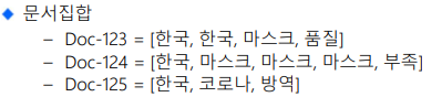 ์ฐธ๊ณ ๋ก df(๋จ์ด) ๋ ์ ์ฒด๋ฌธ์์์ ํด๋น ๋จ์ด๋ฅผ ํ๋๋ผ๋ ๊ฐ์ง ๋ฌธ์์ ๊ฐฏ์๋ฅผ ์๋ฏธํ๋ค.