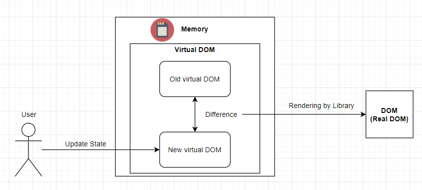 ์ฝ๊ฒ๋งํด, DOM์ ์ํ๋ฅผ ๋ฉ๋ชจ๋ฆฌ ์์ ๊ณ์ ์ฌ๋ ค๋๊ณ ์ค์ DOM์ ๋ณํ๊ฐ ์์ ๋๋ง ํด๋น ๋ณ๊ฒฝ์ ๋ฐ์ํฉ๋๋ค.