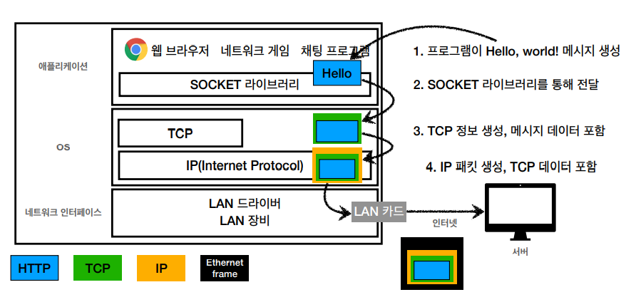 ์ฐธ๊ณ ๋ก ํ ํ๋ก๊ทธ๋จ์์ ๋คํธ์ํฌ ํต์ ์ ํ ๋, ๋ชจ๋ ๊ณผ์ ์ ๋ง์น๊ณ ๋คํธ์ํฌ์ ์ ์กํ๋ ์ง์ ์ (End-Point)๋ฅผ Socket์ด๋ผ๊ณ ๋ถ๋ฅธ๋ค. ์ด์์ฒด์ ๊ฐ ์ ๊ณตํ๋ Socket ๋ผ์ด๋ธ๋ฌ๋ฆฌ๋ฅผ ์ฌ์ฉํ๋ฉด ๋ด๋ถ์ ์ผ๋ก ์๋์ ๊ฐ์ ๋จ๊ณ๋ฅผ ๊ฑฐ์ณ ์ ์ก๋๊ฒ ๋๋ค.