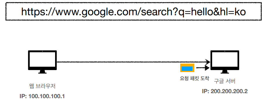 1. ์น ๋ธ๋ผ์ฐ์ ์ URL์ ์ ๋ ฅํ๊ฒ ๋๋ฉด, ํด๋น URL์ HTTP ์์ฒญ๋ฉ์์ง๋ก ๋ณํ๋์ด ์ ํ์๋ Host(์๋ฒ)์ ์ ์ก๋๋ค.