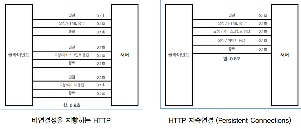 - HTTP ์ง์ ์ฐ๊ฒฐ(Persistent Connections)๋ผ๋ ๊ฐ๋