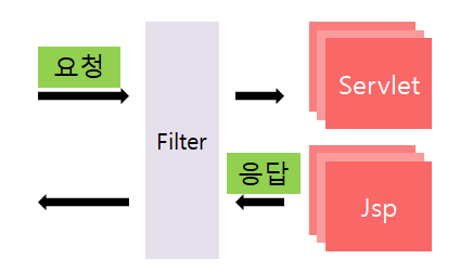์๋ธ๋ฆฟ 2.3๋ถํฐ ์ถ๊ฐ๋ ๊ธฐ๋ฅ์ผ๋ก ํด๋ผ์ด์ธํธ(๋ธ๋ผ์ฐ์ )๊ฐ ์๋ฒ๋ก ์์ฒญ์ ๋ณด๋์ ๋, ์์ฒญ์ด ์๋ธ๋ฆฟ์ผ๋ก ๊ฐ๊ธฐ์ ์ ํํฐ๋ง์ ํ๋ ๊ธฐ์ ์ด๋ค. JSP/Servlet ์คํ์์๋ javax.servlet.Filter ์ธํฐํ์ด์ค๋ก ๊ตฌํํ์ฌ web.xml์ ๋ฑ๋กํ์ฌ ์ฌ์ฉํ๋ค.