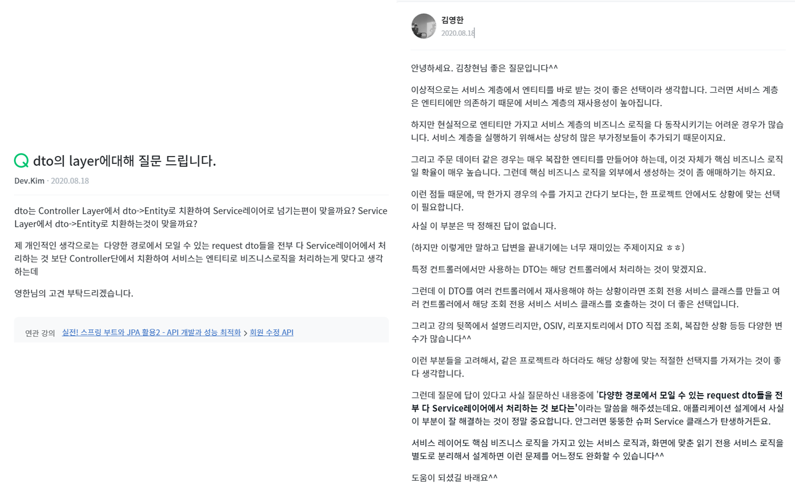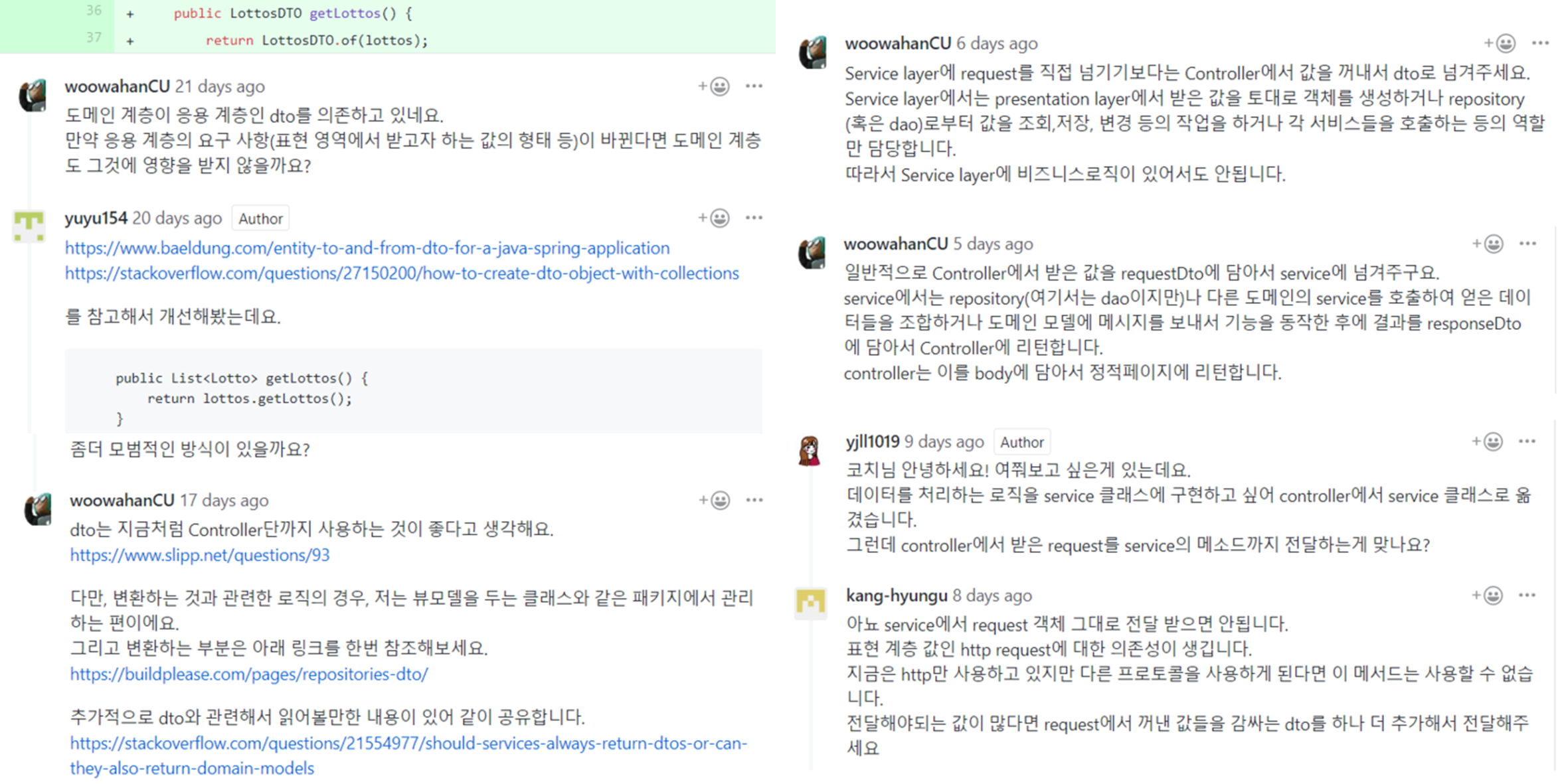 ์ ํด์ง ๋ต์ด ์๋ค๋๊ฒ ๊ฒฐ๋ก ์ด๋ค. DTO๋ฅผ ์ด๋ป๊ฒ ์ฌ์ฉํ๋๊ฐ๋ ์ ๋ต์ด ์๋ค.